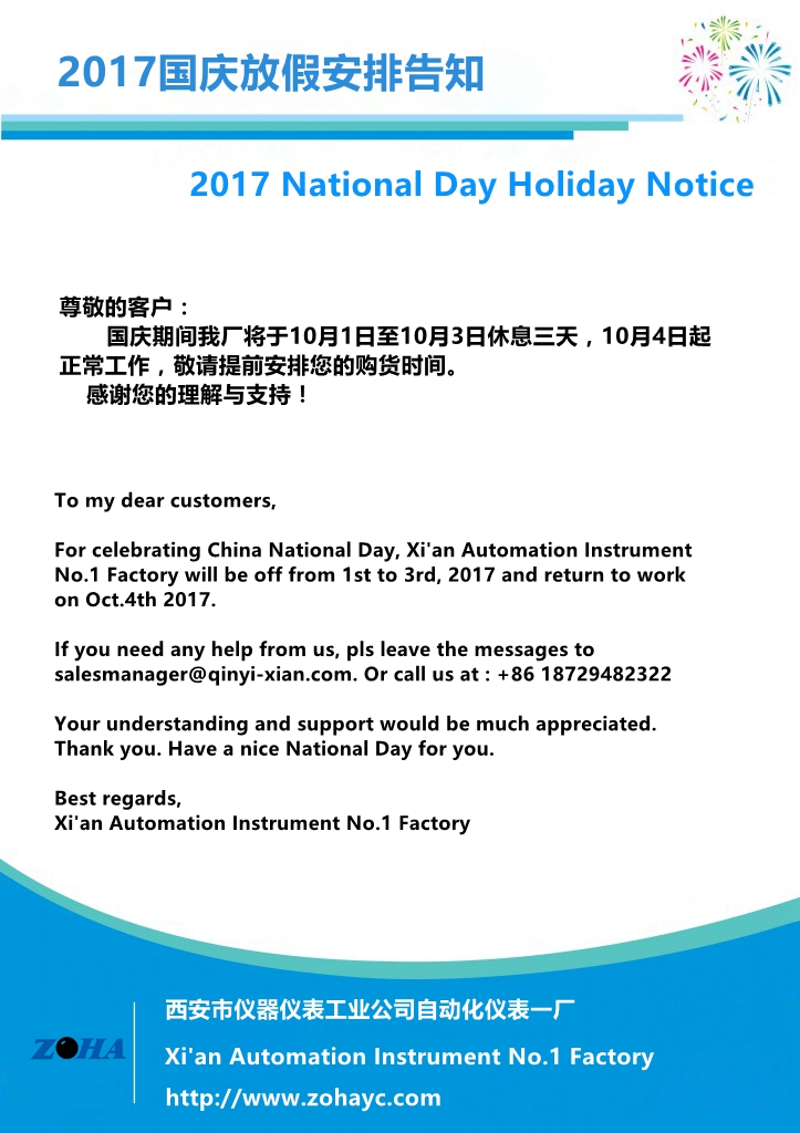 2017 China National Day Notice